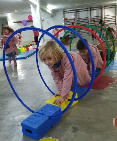 Todos los días realizamos un circuito de estimulación temprana que consiste en una serie de ejercicios que ayudan al alumno a desarrollar y fortalecer sus capacidades emocionales, cognitivas, motoras y sociales.
