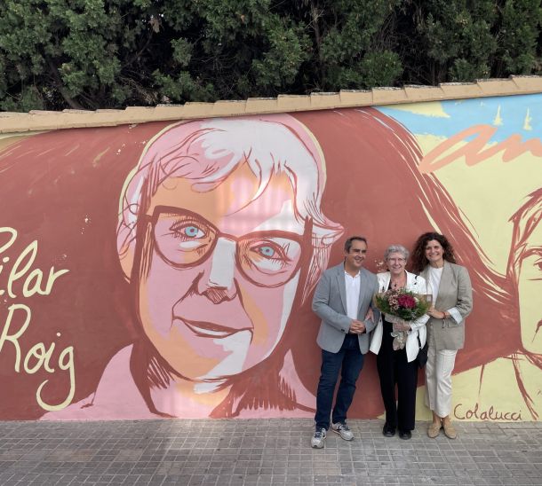 Universidad Politécnica de València y el centro de innovación Las Naves del Ayuntamiento de València, pone en valor a las mujeres en la ciencia y celebra, con este mural, la labor de Pilar Roig. Entre sus proyectos destaca la restauración de la Iglesia de San Nicolás o la basílica de la Virgen de los Desamparados de València. El evento fue posible gracias a la colaboración de la Policia Local Godella y el Ajuntament de Godella.